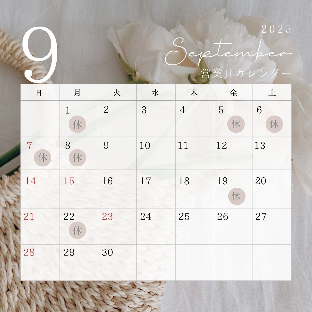 さて、9月の営業カレンダーについてお知らせです。
